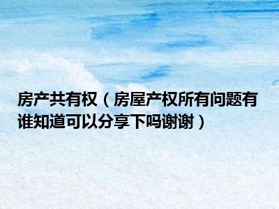 导读 目前大家应该是对房屋产权所有问题有谁知道,可以分享下吗,谢谢!比较感兴趣的,所以今天好房网小编CC就来为大家整理了一些关于房屋产权所
