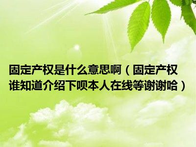 导读 目前大家应该是对固定产权谁知道介绍下呗本人在线等谢谢哈!比较感兴趣的,所以今天好房网小编CC就来为大家整理了一些关于固定产权谁知道介