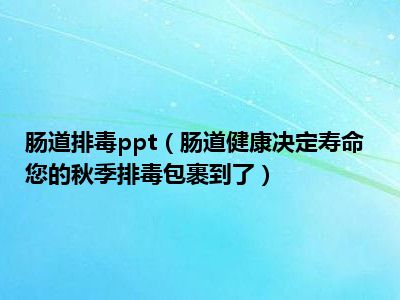 目前大家应该是对肠道健康决定寿命 您的秋季排毒包裹到了比较感兴趣的,所以今天小编CC就来为大家整理了一些关于肠道健康决定寿命 您的秋季排毒包裹到了方面的相关知识来分享给大家,希望大家会喜欢哦。