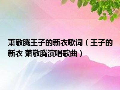导读 目前是有很多朋友们对于王子的新衣 萧敬腾演唱歌曲这个信息比较感兴趣,那么小编也是收集了一些王子的新衣 萧敬腾演唱歌曲相关的信息来分