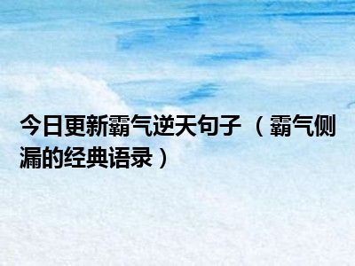 目前上述的内容应该能够为大家解答出大家对于霸气逆天句子 (霸气侧漏的经典语录)的疑惑了,所以如果大家还想要了解更多的知识内容,也可以关注本站其他文章进行了解哦。