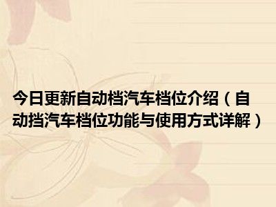 自动档介绍(自动档功能和用法的详细说明)