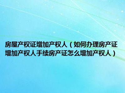 在房产证上加名字,在法律上讲,就是“增加房屋的共有权人”。要增加“房屋的共有权”,按照目前的法律规定有三种方式:房产权赠予房屋买卖析产登记。大家平常涉及的比较多的,也是大家比较关心的是第一点,一般是父母在房产证上加上子女的名字,或者是夫妻加上另外一方的名字。下面我们来看看详细说明!一无贷房产证加妻子、子女、父母名字带好三证(结婚证,身份证,房产证)及其复印件; 去房屋交易中心,窗口工作人员会审核提交的材料; 办理房产证上加名字所需的费用:110元手续费:80元手续费,25元籍图费,5元贴花费。顺利的话,大概20天可以拿到房产证。二有贷款房产证加名字 先去银行办理抵押手续变更; 办理所需要的费用: 除了前面说的110元手续费外。如果贷款是公积金的,需要另外加100元;如果是组合贷款(公积金贷款+商业贷款),需要加200元费用。