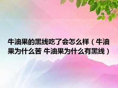 牛油果有黑线能吃。部分牛油果在成熟之后也不会变软,这可能是在采摘后受到过冰冻,这种果子大部分是不会再成熟了,而是在果肉中出现细细的黑色纤维,这种果子是可以吃的,在吃的时候吐出黑色的老化纤维即可。