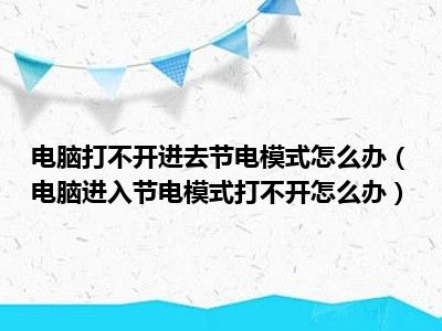导读 1、电脑进入节电模式打不开怎么办2、1 重新连接显示器的信号线,确保信号线与主机连接牢固,没有接错接口:比如信号线应该接在独立显卡的接