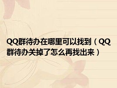 导读 1、QQ群待办关掉了怎么再找出来?2、QQ群待办事项关闭后就查不出来了,但是群主可以重新发起群待办事项。启动QQ group待办事项有三个步