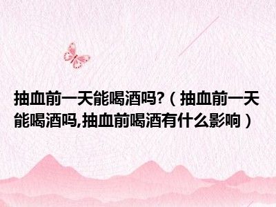 目前大家应该是对抽血前一天能喝酒吗,抽血前喝酒有什么影响比较感兴趣的,所以今天小编CC就来为大家整理了一些关于抽血前一天能喝酒吗,抽血前喝酒有什么影响方面的相关知识来分享给大家,希望大家会喜欢哦。