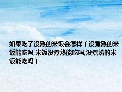目前大家应该是对没煮熟的米饭能吃吗,米饭没煮熟能吃吗,没煮熟的米饭能吃吗比较感兴趣的,所以今天小编CC就来为大家整理了一些关于没煮熟的米饭能吃吗,米饭没煮熟能吃吗,没煮熟的米饭能吃吗方面的相关知识来分享给大家,希望大家会喜欢哦。