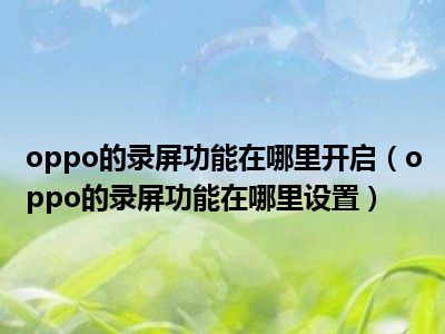oppo的录屏功能在哪里开启(oppo的录屏功能在哪里设置)