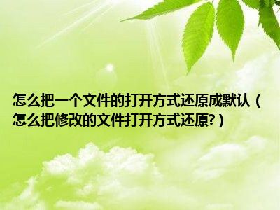 相信目前很多小伙伴对于怎么把修改的文件打开方式还原?都比较感兴趣,那么小编今天在网上也是收集了一些与怎么把修改的文件打开方式还原?相关的信息来分享给大家,希望能够帮助到大家哦。