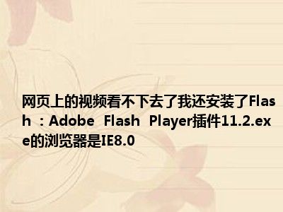 相信目前很多小伙伴对于网页看不了视频,我也安装了Flash:Adobe Flash Player Plugin 11.2.exe 浏览器是IE8.0的都比较感兴趣,那么小编今天在网上也是收集了一些与网页看不了视频,我也安装了Flash:Adobe Flash Player Plugin 11.2.exe 浏览器是IE8.0的相关的信息来分享给大家,希望能够帮助到大家哦。