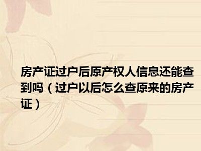 导读 目前大家应该是对过户以后怎么查原来的房产证比较感兴趣的,所以今天好房网小编CC就来为大家整理了一些关于过户以后怎么查原来的房产证方面