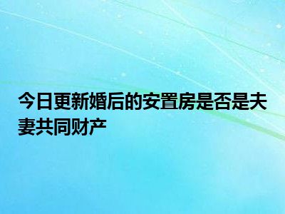 目前大家应该是对婚后的安置房是否是夫妻共同财产比较感兴趣的,所以今天CC就来为大家整理了一些关于婚后的安置房是否是夫妻共同财产方面的相关知识来分享给大家,希望大家会喜欢哦。