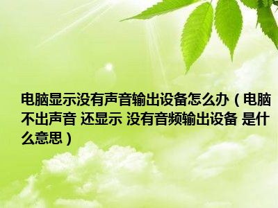 相信目前很多小伙伴对于电脑不出声音 还显示 没有音频输出设备 是什么意思都比较感兴趣,那么小编今天在网上也是收集了一些与电脑不出声音 还显示 没有音频输出设备 是什么意思相关的信息来分享给大家,希望能够帮助到大家哦。