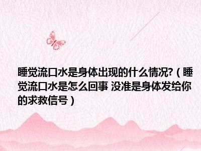 导读 目前大家应该是对睡觉流口水是怎么回事 没准是身体发给你的求救信号比较感兴趣的,所以今天小编CC就来为大家整理了一些关于睡觉流口水是怎...