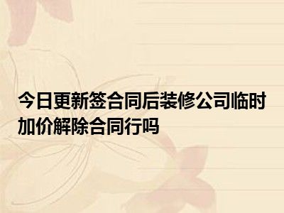目前大家应该是对签合同后装修公司临时加价解除合同行吗比较感兴趣的,所以今天CC就来为大家整理了一些关于签合同后装修公司临时加价解除合同行吗方面的相关知识来分享给大家,希望大家会喜欢哦。