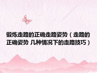 目前大家应该是对走路的正确姿势 几种情况下的走路技巧比较感兴趣的,所以今天小编CC就来为大家整理了一些关于走路的正确姿势 几种情况下的走路技巧方面的相关知识来分享给大家,希望大家会喜欢哦。