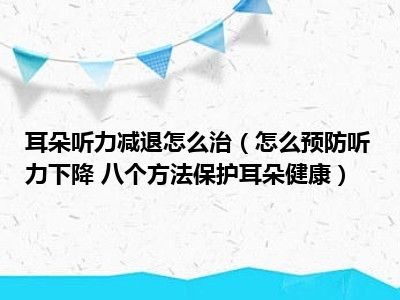 导读 目前大家应该是对怎么预防听力下降 八个方法保护耳朵健康比较感兴趣的,所以今天小编CC就来为大家整理了一些关于怎么预防听力下降 八个方...