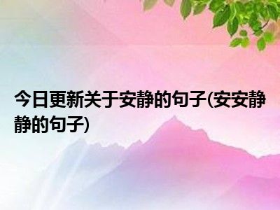 目前上述的内容应该能够为大家解答出大家对于关于安静的句子(安安静静的句子)的疑惑了,所以如果大家还想要了解更多的知识内容,也可以关注本站其他文章进行了解哦。