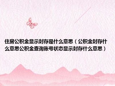 导读 目前大家应该是对公积金封存什么意思公积金查询账号状态显示封存什么意思比较感兴趣的,所以今天好房网小编CC就来为大家整理了一些关于公积