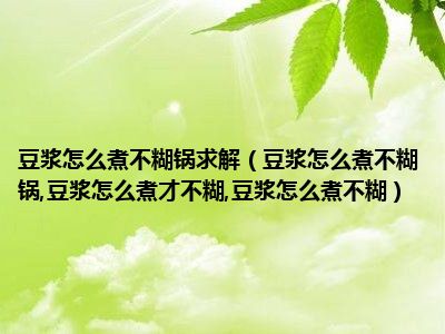 目前大家应该是对豆浆怎么煮不糊锅,豆浆怎么煮才不糊,豆浆怎么煮不糊比较感兴趣的,所以今天小编CC就来为大家整理了一些关于豆浆怎么煮不糊锅,豆浆怎么煮才不糊,豆浆怎么煮不糊方面的相关知识来分享给大家,希望大家会喜欢哦。