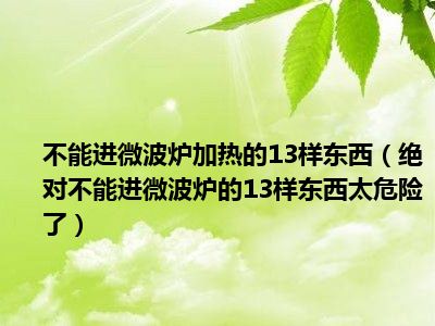 目前大家应该是对绝对不能进微波炉的13样东西,太危险了!!比较感兴趣的,所以今天小编CC就来为大家整理了一些关于绝对不能进微波炉的13样东西,太危险了!!方面的相关知识来分享给大家,希望大家会喜欢哦。