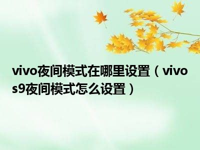 vivo夜间模式在哪里设置(vivos9夜间模式怎么设置)