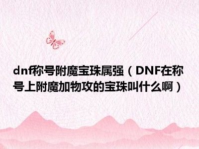 相信目前很多小伙伴对于DNF在称号上附魔加物攻的宝珠叫什么啊都比较感兴趣,那么小编今天在网上也是收集了一些与DNF在称号上附魔加物攻的宝珠叫什么啊相关的信息来分享给大家,希望能够帮助到大家哦。