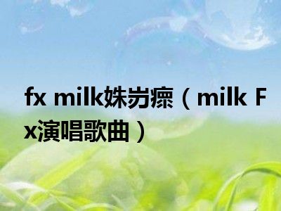 导读 目前是有很多朋友们对于milk Fx演唱歌曲这个信息比较感兴趣,那么小编也是收集了一些milk Fx演唱歌曲相关的信息来分享给大家,希望你会喜...