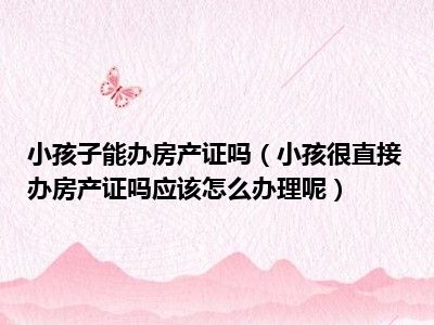 导读 目前大家应该是对小孩很直接办房产证吗应该怎么办理呢比较感兴趣的,所以今天好房网小编CC就来为大家整理了一些关于小孩很直接办房产证吗应