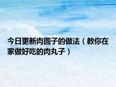 目前上述的内容应该能够为大家解答出大家对于肉圆子的做法(教你在家做好吃的肉丸子)的疑惑了,所以如果大家还想要了解更多的知识内容,也可以关注本站其他文章进行了解哦。