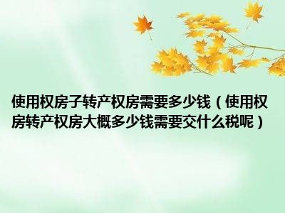 第一,你要搞清楚是否能够转换为产权房,使用权房分为:为可变产权的 使用权房屋 就是 永久使用权的房屋;比方说单位的大产权不愿意卖,单位房就只能是使用权。使用权房屋可以转产权,买入价格的计算较为复杂,政府每年公布一个基准价格,再按照工龄、房屋面积、朝向、楼层等因素进行加减,具体您可以联系当地的物业公司。如可以买,那和正常买房的税费一样:这类使用权房产就相当于尚未被购买的公房,如果想将产权变更到个人,则需要在每年的年初或年中,凭单位工龄介绍信到房管所或产权单位的房管科参加房改,当然,需按建房成本支付费用。而如遇拆迁,房管所或产权单位也有权在拆迁费里扣掉这部分钱。房屋使用者如想获得产权,所交钱数的计算公式为:房屋使用面积乘以系数33后折合成房屋建筑面积,再乘以每平方米1560元。而按这个公式计算,一个使用面积30平方米的使用权房如遇拆迁,所需交给产权单位的钱仅为62244元。再加上折工龄及折旧,每套房合下来的一般只需要交纳两万元左右。使用权的转换不涉及任何交易税费只需要交纳过户费用 .