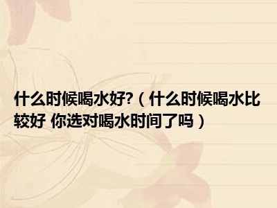目前大家应该是对什么时候喝水比较好 你选对喝水时间了吗比较感兴趣的,所以今天小编CC就来为大家整理了一些关于什么时候喝水比较好 你选对喝水时间了吗方面的相关知识来分享给大家,希望大家会喜欢哦。