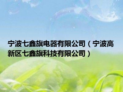 导读 目前是有很多朋友们对于宁波高新区七鑫旗科技有限公司这个信息比较感兴趣,那么小编也是收集了一些宁波高新区七鑫旗科技有限公司相关的信息