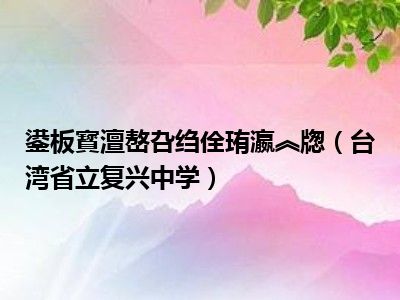 导读目前是有很多朋友们对于台湾省立复兴中学这个信息比较感兴趣,那么小编也是收集了一些台湾省立复兴中学相关的信息来分享给大家,希望你会喜...