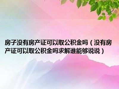 导读 目前大家应该是对没有房产证可以取公积金吗求解谁能够说说比较感兴趣的,所以今天好房网小编CC就来为大家整理了一些关于没有房产证可以取公