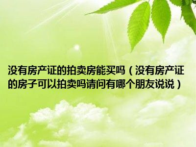 导读 目前大家应该是对没有房产证的房子可以拍卖吗请问有哪个朋友说说比较感兴趣的,所以今天好房网小编CC就来为大家整理了一些关于没有房产证的