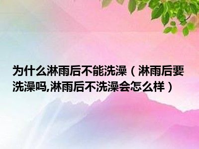 目前大家应该是对淋雨后要洗澡吗,淋雨后不洗澡会怎么样比较感兴趣的,所以今天小编CC就来为大家整理了一些关于淋雨后要洗澡吗,淋雨后不洗澡会怎么样方面的相关知识来分享给大家,希望大家会喜欢哦。