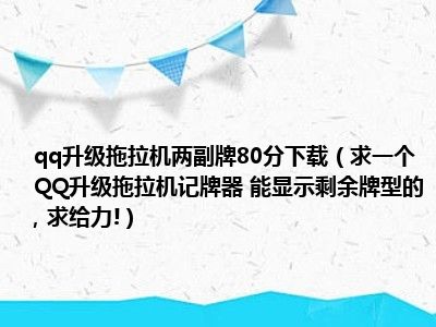 相信目前很多小伙伴对于求一个QQ升级拖拉机记牌器 能显示剩余牌型的, 求给力!都比较感兴趣,那么小编今天在网上也是收集了一些与求一个QQ升级拖拉机记牌器 能显示剩余牌型的, 求给力!相关的信息来分享给大家,希望能够帮助到大家哦。