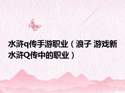 导读 目前是有很多朋友们对于浪子 游戏新水浒Q传中的职业这个信息比较感兴趣,那么小编也是收集了一些浪子 游戏新水浒Q传中的职业相关的信息来