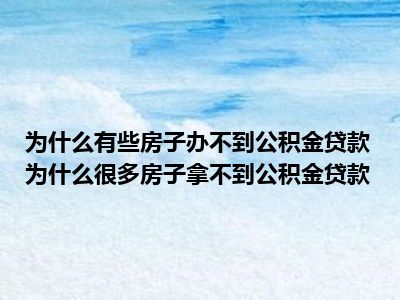 导读 目前大家应该是对为什么有的房子不能公积金贷款为什么很多房子都不能公积金贷款比较感兴趣的,所以今天好房网小编CC就来为大家整理了一些关