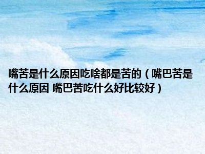 目前大家应该是对嘴巴苦是什么原因 嘴巴苦吃什么好比较好比较感兴趣的,所以今天小编CC就来为大家整理了一些关于嘴巴苦是什么原因 嘴巴苦吃什么好比较好方面的相关知识来分享给大家,希望大家会喜欢哦。