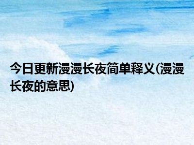 目前上述的内容应该能够为大家解答出大家对于漫漫长夜简单释义(漫漫长夜的意思)的疑惑了,所以如果大家还想要了解更多的知识内容,也可以关注本站其他文章进行了解哦。