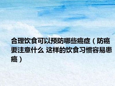 目前大家应该是对防癌要注意什么 这样的饮食习惯容易患癌比较感兴趣的,所以今天小编CC就来为大家整理了一些关于防癌要注意什么 这样的饮食习惯容易患癌方面的相关知识来分享给大家,希望大家会喜欢哦。