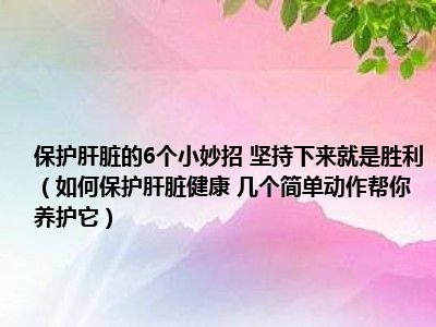 目前大家应该是对如何保护肝脏健康 几个简单动作帮你养护它比较感兴趣的,所以今天小编CC就来为大家整理了一些关于如何保护肝脏健康 几个简单动作帮你养护它方面的相关知识来分享给大家,希望大家会喜欢哦。