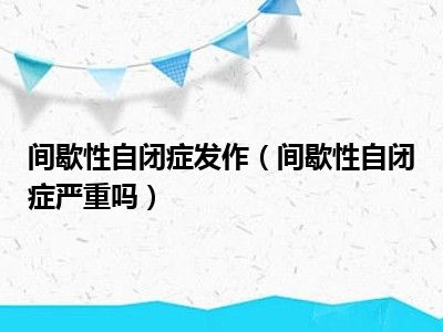 目前应该是有很多小伙伴对于“间歇性自闭症”严重吗方面的信息比较感兴趣,现在小编就收集了一些与“间歇性自闭症”严重吗相关的信息来分享给大家,感兴趣的小伙伴可以接着往下看,希望会帮助到你哦。