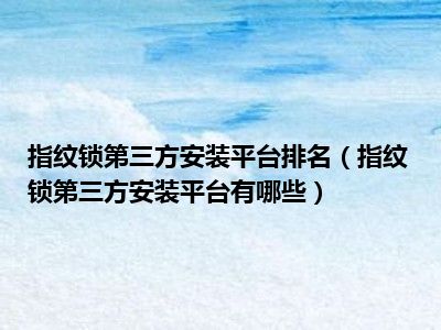 导读 1、指纹锁安装平台2、秀大大3、秀大大拥有30万专业安装人员。全国600个城市,3000个区县,家里都可以安装,还可以预约自己锁定。可以说是一