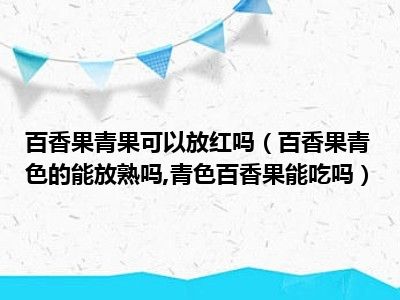 目前大家应该是对百香果青色的能放熟吗,青色百香果能吃吗比较感兴趣的,所以今天小编CC就来为大家整理了一些关于百香果青色的能放熟吗,青色百香果能吃吗方面的相关知识来分享给大家,希望大家会喜欢哦。