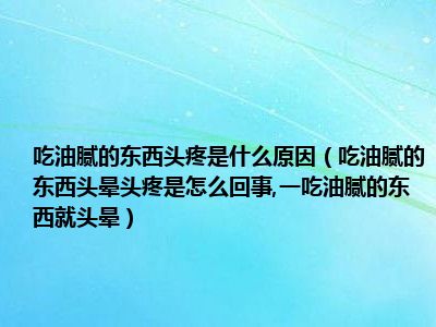 导读目前大家应该是对吃油腻的东西头晕头疼是怎么回事,一吃油腻的东西就头晕比较感兴趣的,所以今天小编CC就来为大家整理了一些关于吃油腻的东...