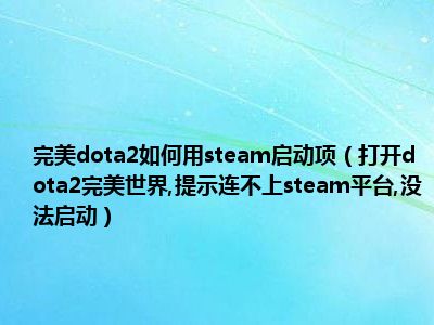 导读相信目前很多小伙伴对于打开dota2完美世界,提示连不上steam平台,没法启动都比较感兴趣,那么小编今天在网上也是收集了一些与打开dota2完美...
